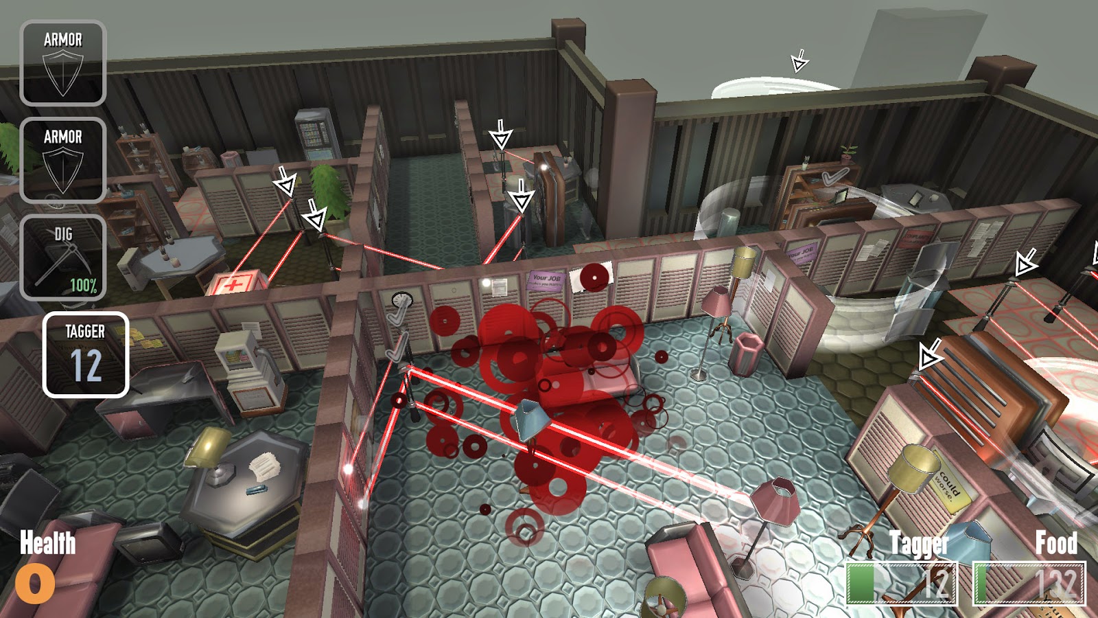The goal of the game is simple, eat furniture and avoid the sentries and various obstacles to advance to the next level. Sounds easy right? WRONG, you could not make a worse mistake then heading into this game expecting a walk in the park, and I mean this in the best way possible. Through out each of the levels there is a ton of furniture to eat...but when the furniture is your only cover, it's not always a good idea to just consume everything. Believe me, these sentries show absolutely NO MERCY. They will destroy you and take your lunch money without a second thought. OH YEAH. One more thing. Once you die in this game, boom, game over. It's like pre-original Legend of Zelda days all over again. I admit, the first thing I said after I booted it up was, “Time to breeze through this.”Man I was wrong. The game uses the old “lure them in” approach, as the first level held up to my expectations as being quick, fun and easy. Once I made it to the second level, things got heated fast. All of sudden, there are sentries shooting at me. Before I knew it, I was having to implement a lot of thought into where I should go and what I should do. The game eventually ended up kicking my ass, but I was up and at it again in no time. If a game kicks my ass within the first few levels, and I get right back to it, I'm a believer right off the bat. The game has what I like to call the Super Meat Boy effect. You can die over and over again, but still keep coming back for more.